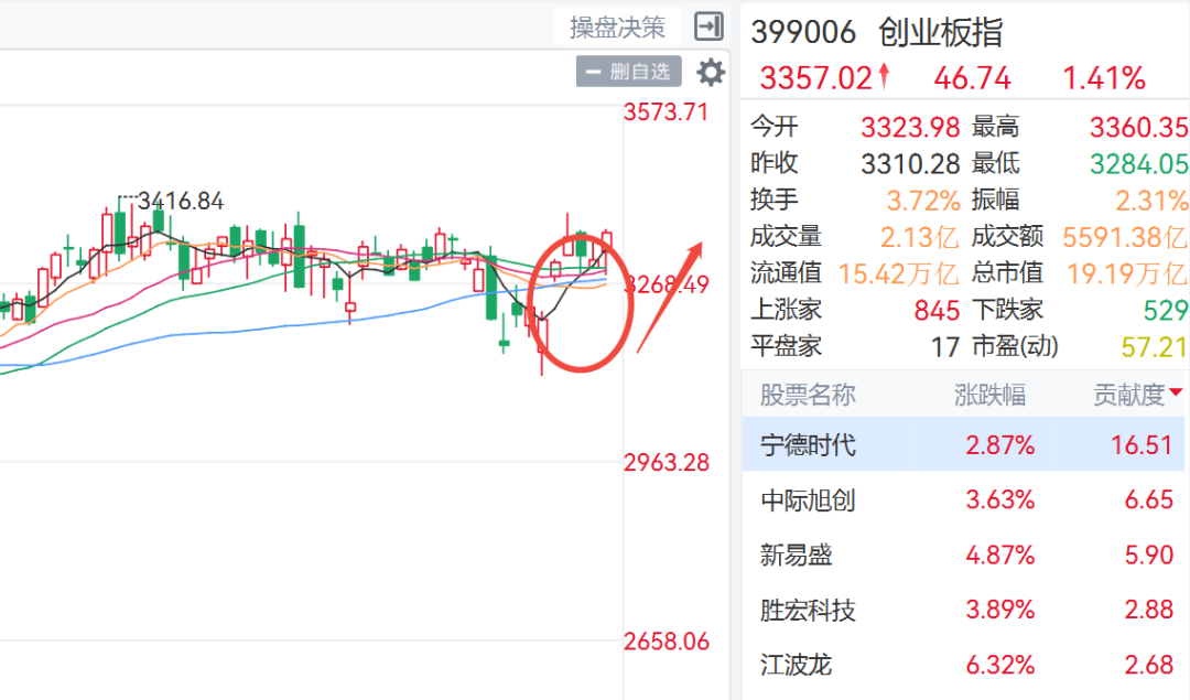 回到盘面,最近是很明显的创业板指数行情,两大权重板块--CPO+新能源大幅度拉升,赚钱效应也是来自于此。